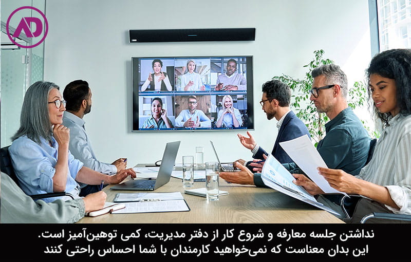 نداشتن جلسه معارفه و شروع کار از دفتر مدیریت، کمی توهینآمیز است. این بدان معناست که نمیخواهید کارمندان با شما احساس راحتی کنند یا علاقهای ندارید که آنها شما را بشناسند.